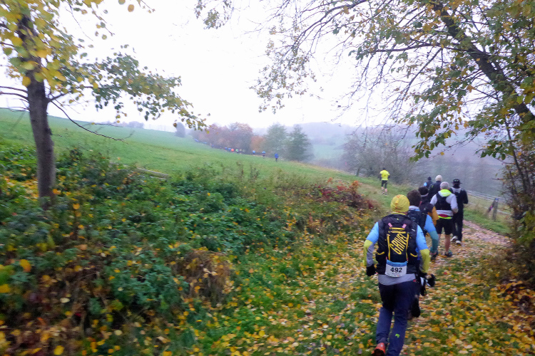 Wenn ich richtig gezählt habe, komme ich heute auf neun Irrläufer, woran ich aber wohl selber schuld war. Die Strecke war korrekt ausgeschildert, aber die Wetterbedingungen mit viel Nässe heute sehr schwierig, besonders für Brillenträger. Dazu kommt die Jahreszeit, das Laub liegt jetzt nun mal sehr hoch. Empfehlenswert ist in jedem Fall, sich den GPX-Track auf seine Uhr oder Handy zu laden. Für alle Strecken werden sie vom Veranstalter zur Verfügung gestellt.