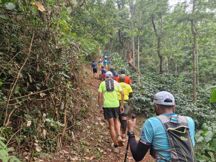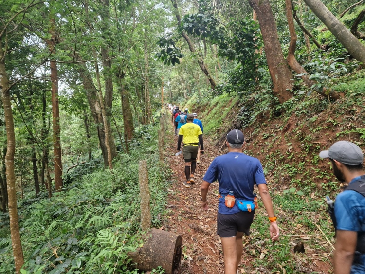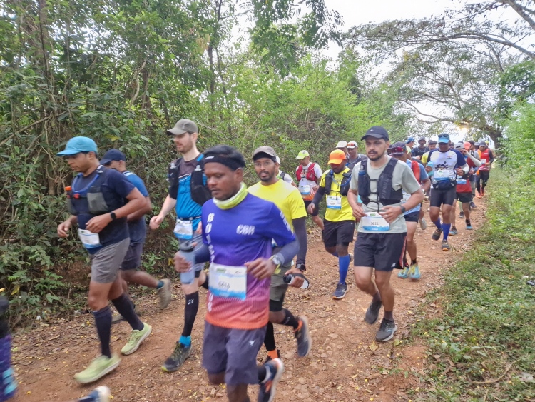 Der Malnad Ultra hatte dieses Jahr 1,300 Anmeldungen, die sich auf ein Streckenangebot von 30 km, 50 km und 100 km verteilen, wobei für die 100 km die gleiche Strecke zweimal durchlaufen wird. Ich melde mich für die 50 km an, die als Tag- und Nachtlauf angeboten werden. Da ich ja etwas sehen will, nehme ich den Lauf am Tag, in dem Wissen, dass es warm werden könnte. 28 °C sind angekündigt, was sich aber durch so manche Wolke und in den oberen Lagen auch guten Wind nicht zu heiß anfühlte.