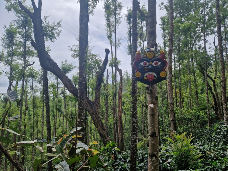 Natürlich gibt es, wie überall in Indien, auch ein paar spirituelle Ankerpunkte, sprich kleine Schreine und Masken, die das Böse aus den Wäldern fernhalten sollen. Nicht spektakulär wie an manchen Orten Nordindiens, aber doch interessant. Ich bin diesmal übrigens in einem Hemd einer lokalen Freiwilligenorganisation (U&I, Mentoring für Schüler aus „bildungsfernen“ Familien) gelaufen, die mein Arbeitgeber in Indien seit Neustem finanziell unterstützt. Und tatsächlich hat mich ein anderer Läufer begeistert darauf angesprochen, da er selber einige Jahr dort als Freiwilliger mitgearbeitet hat. Eine schöne Sache.